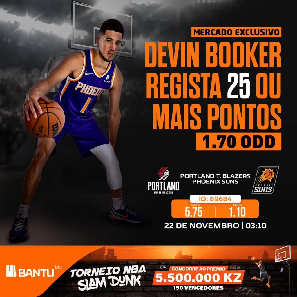 🚀 1.70 Odd: Devin Booker regista 25 ou mais pontos.