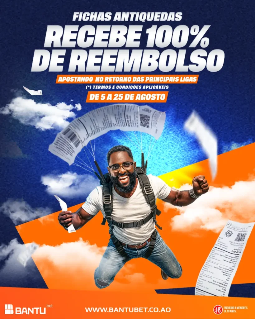 - O reembolso é feito em Aposta Grátis de até 20.000 Kz e creditado em até 24 horas.