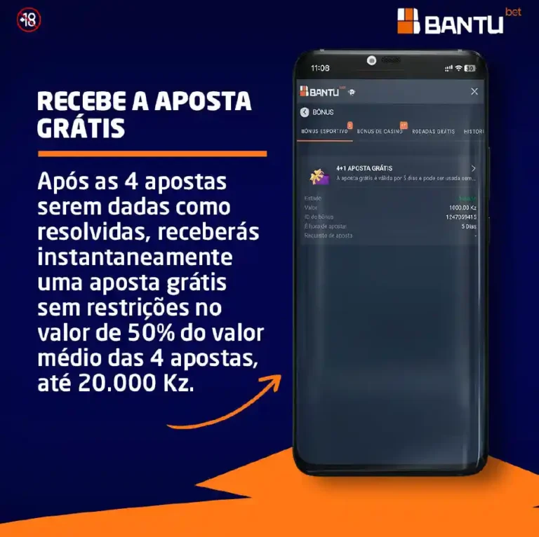 Em primeiro lugar, a promoção “Ganha 4 + 1 da Bantu Bet Angola” é uma iniciativa da Bantubet que recompensa os apostadores com uma aposta grátis após a realização de quatro apostas que atendam a determinados requisitos.